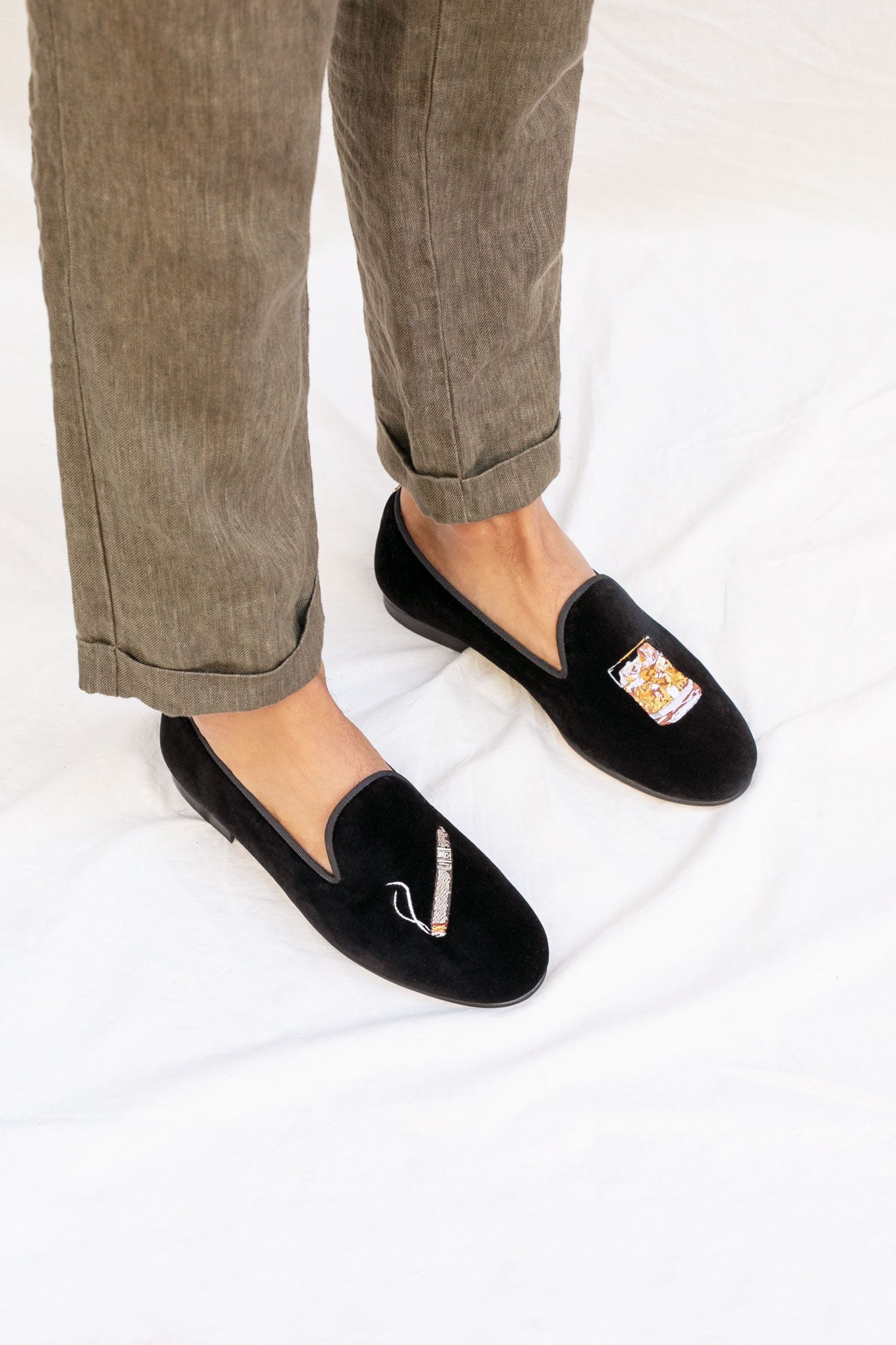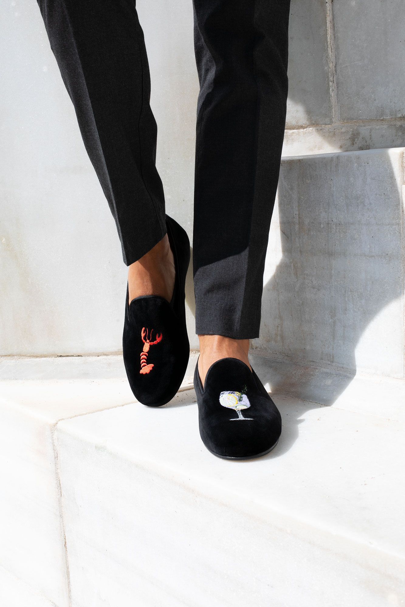 Each pair is handcrafted in Spain, shaped by skilled artisans who understand proportion, texture and restraint. The velvet is selected for depth and richness. The embroidery is precise. The silhouette is deliberate structured yet effortless.