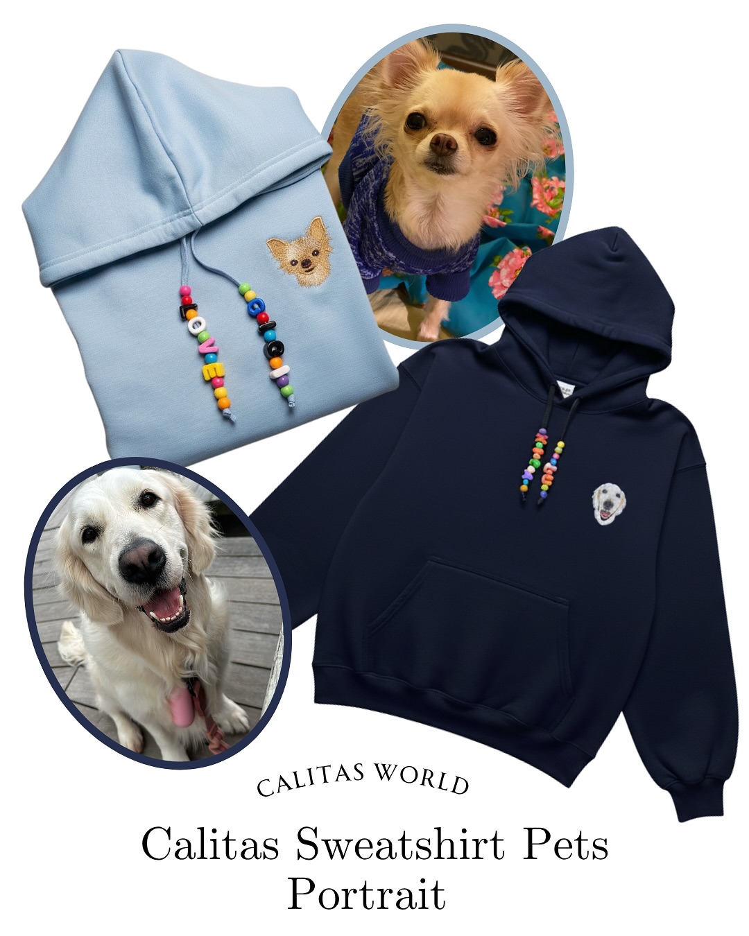 Envuélvete en comodidad y amor con nuestras sudaderas personalizadas con bordado, diseñadas para llevar siempre a tu mascota cerca de ti.